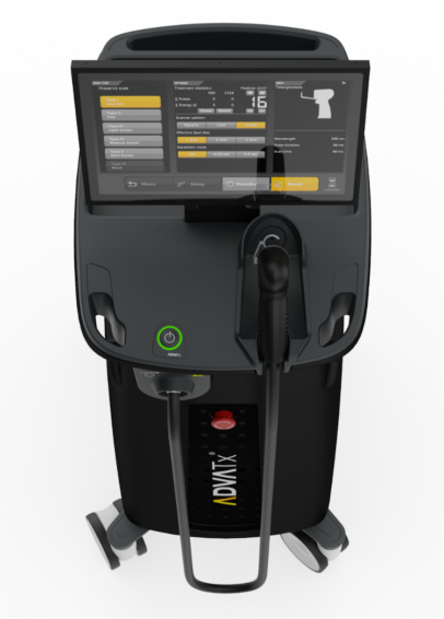 アドバテックスレーザーは、デンマークで開発された最新の美容医療レーザー機器です。その最大の特徴は、589nmと1319nmという2種類の波長を「ソフトパルシング」と呼ばれる方式で照射できる点にあります。ソフトパルシングの特徴は、単純な連続波(一定の強さで照射し続ける方式)ではなく、ナノパルス(非常に短い照射)を繰り返し行うことによって、「疑似ロングパルス」と呼ばれる効果を生み出している点です。