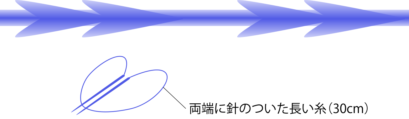 バイニードル(アンカーDXダブル)は、両端に針が付いており、これまでのコグの並びと異なる2つのコグが連続して存在している糸です。連続してコグがあることで強力に引き上げることができます。