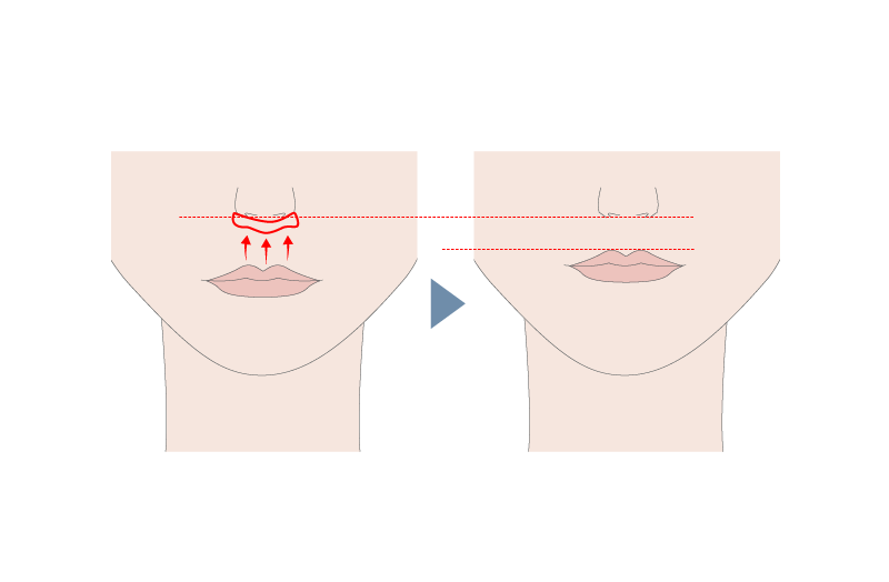 人中短縮術とは、鼻の下から上唇までの距離(人中)を短く整えることで、顔全体のバランスを良くし、若々しい印象を与える美容施術です。